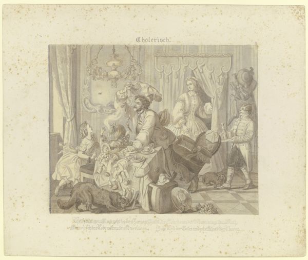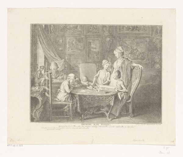 Albert Dillens made this etching, "Interior with a Young Weeping Woman Being Comforted by an Old Woman and a Child," sometime between 1844 and 1915. Dillens was a Belgian genre painter, and his work provides glimpses into the domestic lives of the time. Here, we see a moment of intimate, intergenerational support. The setting is a modest home; the narrative centers around a young woman in distress. An older woman, possibly her mother, and a young child, perhaps her own, offer solace. The work brings forth questions about the roles of women in 19th-century society, expectations for motherhood, and the emotional labor often unseen. Dillen's choice to depict this poignant scene invites us to consider the unspoken stories within these domestic spaces, where women found strength in each other amidst their struggles.