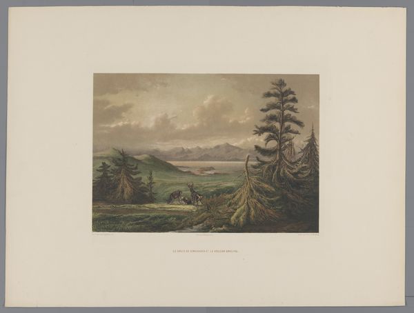 Editor: This watercolor painting, titled "Een stoomboot te water en twee onbekende personen op een rots," roughly translates to "A Steamboat on the Water and Two Unknown People on a Rock", by Impi Backman, was likely painted between 1888 and 1893. I am struck by the almost monochromatic composition of the piece. What are your thoughts on how the visual elements contribute to its impact? Curator: Notice how Backman manipulates the washes of watercolor to establish a depth of field. The composition hinges on a carefully calibrated sequence of light and dark tones. The structural arrangement uses the placement of the trees to give a clear perspectival point. Editor: I see it now, it looks so realistic! How does Backman uses a range of techniques for colour composition? Curator: In the layering of diluted pigments. Observe how he modulates the density of pigment to differentiate between areas of illumination and shadow. The structure relies heavily on subtle value shifts, creating a palpable sense of atmosphere without resorting to bold colour contrasts. How is that evident in the presentation of water surface? Editor: Well, from what I can observe, it captures how the water has this soft reflected light. What else do you see? Curator: Note, too, the semiotic implications of the steamboat in the painting's title; It symbolizes human ambition versus the natural landscape. It presents themes of industry, but is subtly subdued. Editor: That gives the whole artwork so much more depth! Thanks for bringing these compositional strategies to my attention! Curator: Of course. Recognizing and dissecting the use of formal properties enriches any work, transforming it from a mere depiction to a layered text.