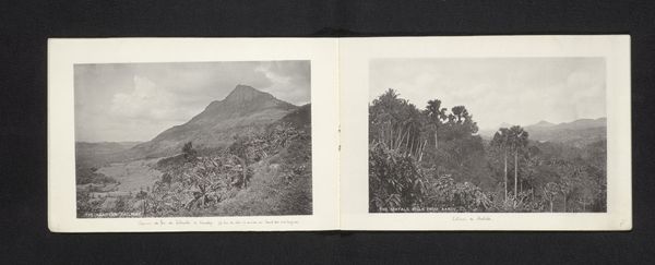 Curator: This photograph, taken around 1900 by Henry William Cave, depicts a tea field near Adam's Peak. The gelatin-silver print captures the workers amongst the fields, with the mountain looming in the background. Editor: It has an incredibly unsettling calmness for an image so clearly portraying exploited labor, doesn’t it? The mountain feels both majestic and indifferent, dwarfing the figures below. Curator: Absolutely. Consider the colonial context. Cave was a commercial photographer catering to a European audience, presenting an image of Ceylon, now Sri Lanka, that emphasized its exotic beauty and economic productivity. This photo actively normalizes colonial enterprise. Editor: So, the “beauty” obscures the reality of the tea pickers. They become picturesque elements, softened to palatable consumable commodity, devoid of individual stories or even humanity. Curator: Precisely. The composition subtly reinforces power dynamics. The framing isolates the workers in this sea of tea, with the elevated viewpoint symbolizing authority and control over their labor. We aren't seeing this field through their eyes, but rather from the overseer’s position, perpetuating the romanticized notion of plantation life while concealing its inherent oppression. Editor: It's like a visual branding exercise. You see the verdant landscape, almost breathe in the promise of the tea, and miss the back-breaking work that yields such products. We are prompted to think about a good cup of Ceylon tea more than the people in the tea fields, the landscape here is the spectacle. Curator: The photograph exists in this awkward place where natural beauty, and social exploitation intersect and how it was viewed then compared to now shows that no art exists in a vacuum. Editor: Looking at it, you feel a profound disconnect, this kind of exotic pastoral beauty, tinged with something unsettling – a constant reminder of its dark history, a legacy we’re still reckoning with.