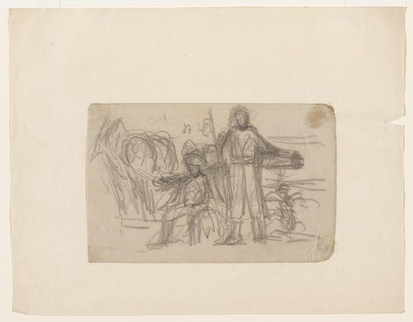 Bernard Picart created "Emmaüsgangers", a drawing now held at the Rijksmuseum, during a time when Europe was deeply entrenched in religious and philosophical debates. Picart, positioned within the context of religious art, here reimagines a biblical narrative through his own lens. The figures, rendered with delicate lines, evoke a sense of quiet contemplation. The image illustrates the journey to Emmaus, a story of recognition and revelation. We see Jesus walking alongside two disciples, their expressions suggesting a mix of confusion and curiosity. I wonder about Picart's intention, did he perhaps aim to portray the intimate moment of understanding that transcends social differences. Perhaps he was considering the emotional weight of the moment of realization, focusing on the expressions and interactions between the figures. In reflecting on Picart’s work, consider how it invites us to think about our own journeys of discovery, recognition, and the deeply human desire for understanding.