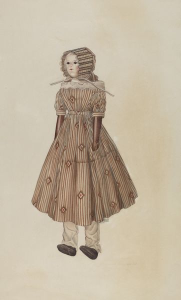 This paper doll dress, entitled 'Jurk voor een uitknippop' was created by an anonymous artist with unknown materials. The piece captures a moment in time, not through a grand portrait or historical scene, but through the lens of domestic life and childhood play. The dress's design reflects the fashions of the 19th century, a time when clothing was heavily dictated by social status and gender roles. The act of dressing and adorning paper dolls provided a space for young people to internalize and perform these roles, mimicking the rituals of adult society. This simple cut-out also touches on the burgeoning consumer culture of the time, where fashion and material goods were becoming increasingly accessible and desirable. As historians, we look beyond the surface to uncover the social structures and cultural values embedded within such seemingly simple objects. By researching fashion trends, childhood education, and the rise of consumerism in 19th-century Europe, we can better understand the significance of this paper doll dress and the world it inhabited. The meaning of art is always contingent on the society in which it was made.