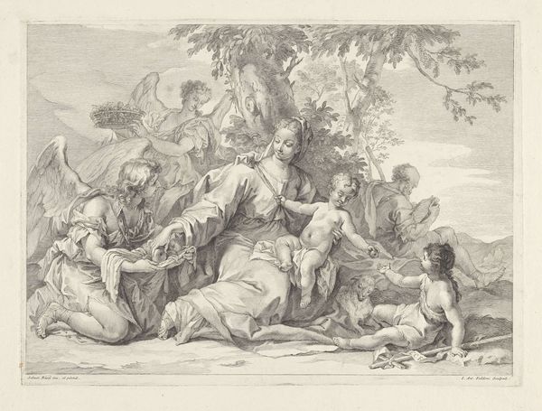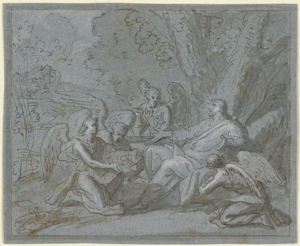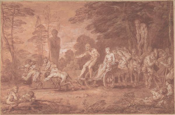 Editor: This is William Taverner’s "Diana and her Nymphs," from the Tate collection. The composition feels very intimate, and frankly, a little voyeuristic. What social norms might have influenced the artist's choices? Curator: It's interesting you pick up on that tension. Think about the male gaze prevalent during Taverner's time. How might the artist's depiction of female nudes both reflect and perhaps subtly critique the power dynamics of viewing and being viewed? Editor: I hadn’t thought of it that way! The act of observation itself becomes part of the story, highlighting the power imbalance. Curator: Exactly! The painting invites us to consider the ways in which gender and power intersect within the artistic and social landscape of the 18th century. Editor: So much to unpack here. Thank you. Curator: Indeed, the dialogue continues.