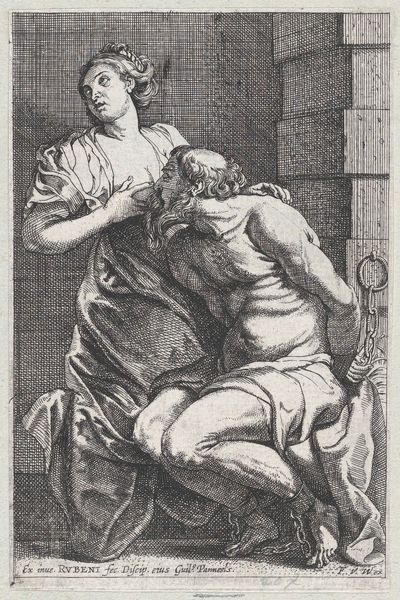 Paulus Pontius created this print of the Vision of Saint Hermann Joseph in Antwerp, sometime in the first half of the 17th century. We see the kneeling Saint Hermann Joseph receiving the hand of Mary, who is flanked by angels. The print was made in the Southern Netherlands during the Counter-Reformation, when the Catholic Church sought to reinvigorate religious devotion and reaffirm its authority through art. Prints like these played a key role in disseminating approved religious imagery and promoting the cult of saints. The prominent display of Latin text and heraldic symbols indicates that the print served an institutional purpose within the church, perhaps as a commemorative object. For the art historian, prints like this offer a window into the religious, social, and political climate of their time. By researching the printmakers, patrons, and institutions involved, we can better understand the complex interplay between art, power, and belief in the early modern period.