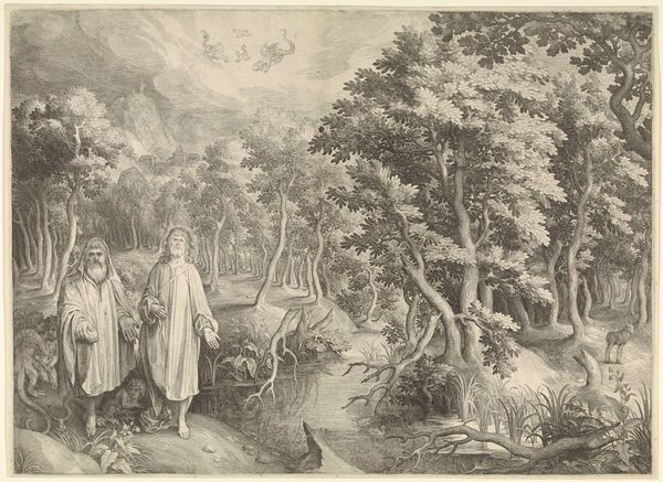This engraving by Nicolaes de Bruyn captures a pivotal moment: Balaam and the Angel. Here, Balaam, mounted on his donkey, is confronted by an angel wielding a sword. This imagery, rooted in the Old Testament, speaks of divine intervention, hidden truths, and the consequences of greed. The angel, though unseen by Balaam initially, is visible to the donkey, an animal often symbolizing instinct and humility. Consider the sword. It's not merely a weapon, but a symbol of divine justice and authority, echoing through centuries of art – from classical depictions of Nemesis to Renaissance portrayals of archangels. This motif transcends cultural boundaries, appearing in various contexts. Here, the motif serves as a psychological fulcrum, representing the tension between Balaam's will and divine command. The image delves into the subconscious, tapping into our primal understanding of power and submission, engaging us on a deeper, almost visceral level. Note the cyclical recurrence of the avenging angel motif throughout history, evolving and adapting, yet always resonating with that ancient chord of moral reckoning.