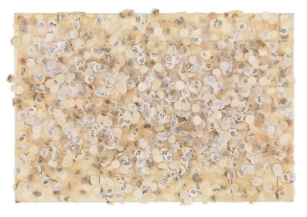 Leonardo Drew created 'Number 76S' using wood and cotton, building a densely packed relief. The use of cotton immediately brings to mind the history of the United States and the enslaved people who were forced to cultivate it, and Drew uses abstraction to create an active engagement with this history. Drew was born in 1961 in Tallahassee, Florida, and grew up in Bridgeport, Connecticut. His work often incorporates discarded materials, referencing urban decay and transformation. He is self-consciously progressive and his assemblages often challenge conventional notions of beauty. Drew's work also invites viewers to consider the institutional context in which art is displayed. By presenting art that demands contemplation of difficult subjects, Drew challenges institutions such as museums and galleries to live up to their public role. To understand the full scope of his work, art historians often turn to archives, historical documents, and social theory. This multifaceted approach is key to unlocking the complex meanings embedded in art.