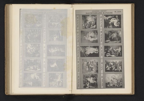 Curator: Here we have a photomechanical reproduction of ten images after paintings, prints, and possibly photographs. It dates to the late 19th century, likely created between 1872 and 1882. Editor: It presents a somewhat clinical catalog of styles. I'm immediately drawn to the play of light and shadow within each tiny square, though, a micro-study in pictorial techniques. Curator: Indeed. These kinds of reproduction catalogs served a vital role in the circulation of imagery during this era, democratizing access, especially for marginalized communities that often had restrictions in museum accessibility. Consider how a rural schoolteacher, or a woman barred from advanced academic circles, could expand their art historical knowledge. Editor: From a purely formal standpoint, the stark contrast of the images themselves against the off-white pages offers an interesting duality: high art reduced to the uniform texture of mass reproduction. Curator: Absolutely. We might consider this item in relationship to the broader discourse on reproduction and authenticity—how are we to position high and low brow notions of art? Were institutions or patrons challenged to reckon with how such democratization would impact or influence social mores, or their own standing within those societal confines? Editor: Notice how the arrangement itself implies a visual logic. Landscape next to portraiture, followed by a narrative scene—almost like a compressed exhibition within a book. Curator: It speaks volumes about the era's urge to classify, organize, and master information through accessible, even if rudimentary, technology. One could analyze these juxtapositions with an eye toward art and class struggles of the time, examining how power sought to maintain and replicate itself. Editor: True. And it begs a further inquiry into the selection process; what narratives did these curated groupings subtly convey? Curator: I’ll carry these themes with me now. Thank you. Editor: And I, a renewed appreciation for the nuance of greyscale!