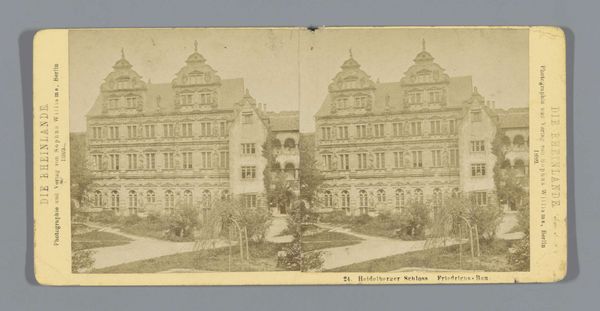 Editor: Here we have Jean Andrieu's "Voorgevel van de Basilique Sainte-Croix te Bordeaux," created between 1862 and 1876 using photography and photomontage. It has a rather formal, almost stoic feeling, don’t you think? What kind of symbolism can we unpack from this composition? Curator: Indeed. Consider the Basilique itself as a symbol of spiritual and temporal power. Andrieu, through the then-modern technology of photography, captures not just a building but also an ideal. Note the imposing facade; those twin towers could represent strength, resilience, and the pillars of faith, standing steadfast against time. Editor: I hadn’t thought of the towers in that way. Is there anything to the figures around the entrance? Curator: Absolutely. While the resolution makes detail challenging to discern, remember that Romanesque churches such as this would typically adorn their facades with biblical scenes. Each sculpted figure, each arch and column, served as a visual language to convey stories and moral lessons to the faithful. What emotional responses are evoked within you when looking at these elements? Editor: It's powerful, but also a bit removed, I guess. The formality creates a sense of awe, maybe. I suppose Andrieu was trying to capture not just the building but the ideas it represents? Curator: Precisely. Consider too that this photomontage, by uniting various images, creates a carefully constructed reality. Even the horse-drawn carriage adds a layer of narrative; perhaps signifying pilgrimage, travel, or even trade. Think about the visual continuity – what symbols are carried forward and what have we lost over time? Editor: This has definitely opened my eyes to layers I didn’t see at first. Thanks for guiding me through the symbolism of it all! Curator: My pleasure. It is in understanding symbols that we unlock a deeper appreciation of art's capacity to shape and reflect our cultural memories.