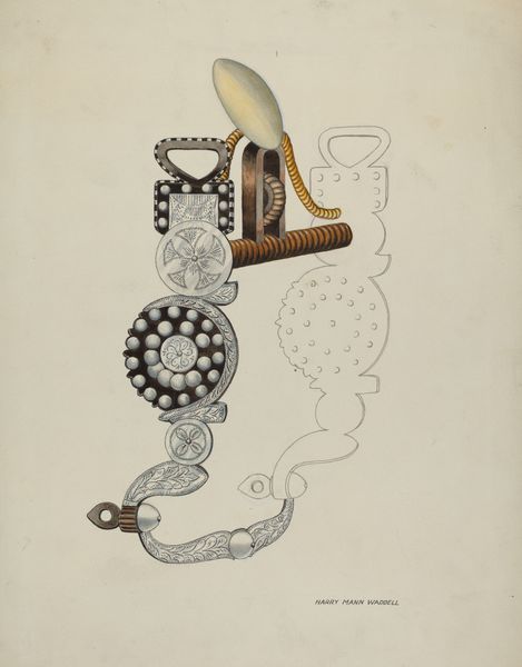 Grace Thomas made this watercolour painting of a harp sometime in the 20th Century; it’s all about observation, I think. She really took her time here. There’s something meticulous in the way she’s rendered the wood grain. The harp’s surface is brought to life through soft washes and precise details, like the tiny stars and dots carved into the wood. Look at the swirling patterns at the top – they’re almost edible! The texture is palpable. The overall feeling is gentle, a bit faded like an old memory. I love the way she captured light and shadow, turning a simple object into something almost monumental. It reminds me of Agnes Martin's quiet intensity or maybe even some of Giorgio Morandi's still life paintings, where everyday objects become profound through careful observation and repetition. It’s the kind of piece that keeps whispering new things the longer you look.