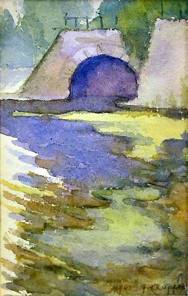 Editor: Here we have Denman Waldo Ross's "Portrait of a Young Man Bending Over," housed right here at Harvard. It feels almost like a fleeting memory, rendered in soft blues and whites. What can you tell me about the imagery at play here? Curator: The bending figure is timeless, isn't it? Throughout art history, the act of bending, especially towards water, often symbolizes introspection, humility, or even baptism and cleansing. Do you feel that reflected here? Editor: I hadn't considered the religious connotations, but now that you mention it, there's definitely a sense of purification or transformation. Curator: Indeed. And the ripples, the water itself—they're symbols of change, of the ephemeral nature of existence. It's a powerful echo of cultural memory within a very personal moment, don’t you think? Editor: That makes me look at it completely differently; it's more complex than I initially thought. Curator: Exactly! The beauty of art lies in its ability to hold multiple layers of meaning, shaped by cultural symbols and personal interpretation.
