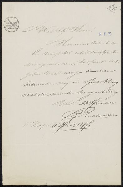 This is a letter written by Fanny Geefs-Corr in Brussels on May 13, 1843. It’s addressed to an anonymous recipient. The letter’s content speaks volumes about the art world of 19th-century Belgium, and particularly the challenges faced by women artists. Geefs-Corr humbly requests that the recipient display her paintings in a prominent location, implying a struggle for visibility and recognition. The act of writing this letter, the delicate balance of deference and assertiveness, reflects the social constraints placed upon women seeking professional success. Geefs-Corr was the sister of painter Henriëtte Ronner-Knip and the wife of sculptor Joseph Geefs, placing her within a network of artists, yet still she had to advocate for herself in this way. To truly understand this letter, one might delve into exhibition records of the time, scrutinize the biographies of female artists, and explore the institutional biases that shaped their careers. The meaning of this artwork lies in the artist’s negotiations with the social and institutional norms of her time.