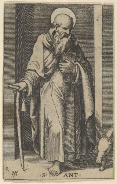 Curator: So, here we have "Two Men with Hats" a rather diminutive engraving from between 1596 and 1630, made by Claes Jansz. Visscher, a prolific artist of the Dutch Golden Age. Editor: They look rather imposing, don't they? Solemn even. There's something undeniably powerful in the way they are depicted, despite the small scale. It's like looking into a different world with a stern history. Curator: Visscher had an incredible knack for capturing character in his portraits. Note the way the man on the left has his hand raised, like he's in the midst of a conversation. And the other, draped in what appears to be an elegant cloak, gazes off with an intensity. Editor: The hats are significant, aren't they? A statement of status and perhaps even their professions. The ruff on the first gentleman really screams, well, speaks volumes, literally encircling and spotlighting him as a certain type of leader, even an influencer, of his time. The high hat as well; a certain stuffiness comes to mind. Curator: Absolutely. It all speaks to a very specific societal structure. Clothing has always played such a vital part in that. This also ties into a larger cultural symbol. "Lusitan," inscribed at the bottom, indicates Portuguese origin, alluding to perhaps two men with strong influence within Portuguese communities. Editor: Yes, it's intriguing to think about what these figures would have represented back then. Do you think this image was intended for broad circulation, perhaps a statement about society and these two figureheads of the community? Curator: Visscher's prints were quite popular and widely distributed, which suggests the image served as an affirmation of sorts, or a means of conveying prestige. Perhaps even for the subjects of the work themselves, acting like promotional content today, or for political leverage, one might assume! Editor: Looking at it now, after a closer look, one can observe it and try and uncover that symbolic connection from hundreds of years ago. I think it gives you an interesting vantage point of an age gone by. Curator: Exactly. The small print is not only visually intriguing, it can inspire us to reflect on all types of different perspectives, not only those presented to us directly, which in and of itself carries symbolic weight!