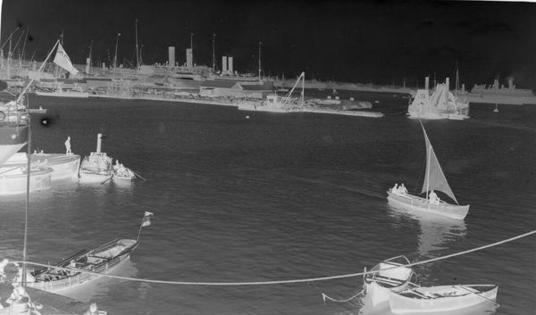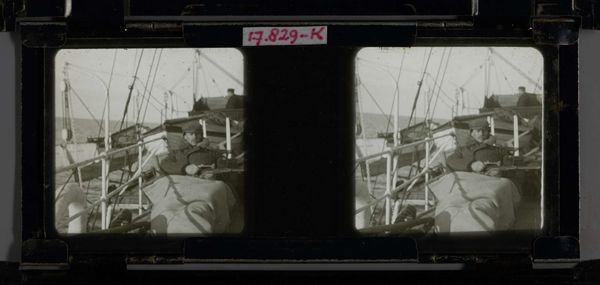 Curator: This intriguing snapshot, simply titled "Untitled (children on dock in lake, seen from above)" by Lucian and Mary Brown, presents a fascinating study of leisure. The print measures about 7.62 x 10.16 cm and is now part of the Harvard Art Museums collection. Editor: The scene feels almost like a dream, a half-remembered summer day. The inverted tones and the odd perspective create an unsettling yet nostalgic atmosphere. Curator: Exactly. The image begs us to consider themes of privilege and access to leisure. Who are these children, and what narratives of class and race are implicit in their carefree play? Editor: It also makes me think about the act of observation. What does it mean to be looking down, to be removed from the scene? Are we implicated in their innocence, or merely detached viewers? Curator: This photograph is a potent reminder that seemingly simple images can hold profound social and political implications, and they provide insight into lives and cultures. Editor: I’m left with a feeling of melancholy beauty, a longing for something I can't quite name.