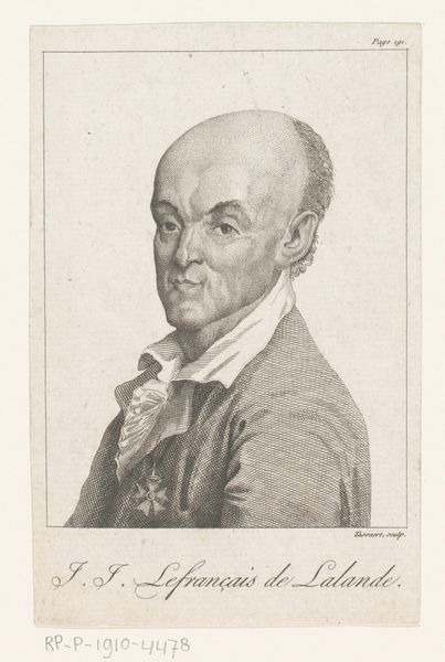 Editor: This etching, "Hans Vilhelm Riber" by J.F. Clemens, gives us a profile portrait of a man from the 18th century. I’m struck by how much detail the artist captured with such a seemingly simple medium. How would you interpret this work? Curator: I see a potent intersection of social class, representation, and artistic technique. The subject’s gaze avoids direct engagement. His attire, a finely striped coat, signifies his status within the societal hierarchy of the time, while the precise rendering hints at the artist’s desire to elevate him through this etching. Editor: So, it’s more than just a portrait; it’s a statement? Curator: Exactly! Consider who typically had portraits made during this period. What does it say about power dynamics, visibility, and the creation of a historical record? Moreover, consider the print medium itself. Prints circulated more widely than paintings, hinting at a strategic dissemination of his image and, by extension, his social position. Editor: That’s fascinating. It completely changes my understanding of the image. I initially just saw a portrait of someone important, but you're showing me the power of visual culture in reinforcing social hierarchies. Curator: Precisely. We must always remember that art is rarely produced in a vacuum. Investigating the circumstances of its creation gives us profound insight into the society that birthed it. The question remains: whose stories were deemed important enough to tell, and whose were silenced? Editor: I see your point. It is about the stories art tells us about social and political settings. It is clear that representation in this image comes with its own implicit message. Thanks for making me aware of this and other power relations. Curator: It is important to challenge our perceptions about the purpose of the portraits and other historical images to create broader inclusive perspectives.
