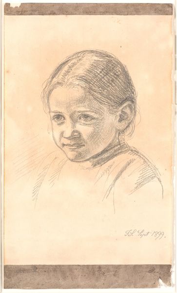 Editor: This is L.A. Ring’s "Portræt af italienerdreng," a pencil drawing made sometime between 1893 and 1895. It feels so raw, almost unfinished. The artist’s process is incredibly visible in the lines themselves. What can you tell me about this piece? Curator: Look at the surface of the paper; it shows its age, its history of being handled. Then look at Ring's chosen medium. Why pencil, do you think? It's inexpensive and accessible; far from the oil paints associated with high art at the time. Editor: It makes the work feel less formal, more intimate. Almost like a quick sketch he made in passing. Curator: Precisely! And that’s crucial. Consider the sitter: an Italian boy, likely working or begging in Denmark. Ring, known for his social realism, uses the immediacy of pencil to capture a fleeting moment, not of a wealthy patron, but of a working-class child. Editor: So, the choice of materials elevates the subject, or democratizes portraiture through accessibility of its materiality? Curator: I would argue that Ring is making a quiet social statement. This is not the polished art of the elite. This is labor reflected through a simple tool. It’s not just *who* is being depicted, but *how* they are depicted that becomes significant. Editor: I never considered the material itself having that much of an impact. Thanks, I'll remember that going forward. Curator: My pleasure. Keep your eye on the process, on how things are made and what the implications of that are. You will find many rich observations as you develop your career as an editor.