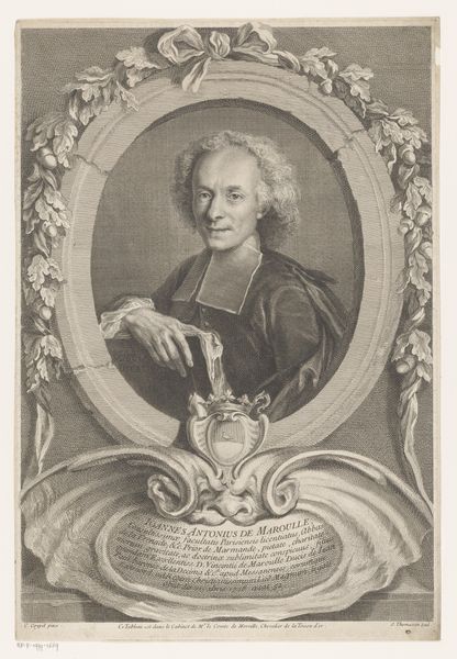 Curator: Editor: This is Georg Friedrich Schmidt’s portrait of La Mettrie. I’m struck by the contrast between the apparent spontaneity of the image and the clear labor invested in the printmaking process. What do you make of it? Curator: Well, I immediately consider the economics of portraiture at this time. Schmidt, as a printmaker, was essentially engaged in a form of mechanical reproduction. This challenges the notion of the unique art object, doesn't it? And what about La Mettrie's own profession and social standing? Editor: It does! It makes me think about the accessibility of images and how this portrait, through printmaking, could reach a wider audience. The means of production really shaped its reception, didn't it? Thanks, this was really insightful. Curator: Indeed, the interplay of labor, material, and social context is key to understanding its significance.