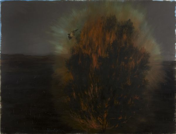 Curator: Oh, this feels like a memory, slightly faded, warm with amber tones. Editor: Indeed. What we're looking at is Howard Hodgkin's piece, "Those... Plants" housed right here at the Tate. It appears to be some kind of print. Curator: Prints, you know, they allow the artist to really wrestle with a vision. It's not just about the final image, it's about the layers, the labor... it's about capturing the feeling. Editor: Absolutely, and thinking about Hodgkin's process here – the repeated gestures, the layering of color. It challenges the preciousness we often associate with painting. There's a real physicality to it. Curator: A physicality, yes! I feel like I'm standing in a humid greenhouse, with the sun filtering through. Editor: I agree. It is interesting how the image is framed by these bold green strokes; almost a window. Curator: Hodgkin always understood how colors, shape, and even texture could stand for emotions. Editor: And in "Those... Plants" we see how the labor involved in printmaking allows Hodgkin to push the boundaries of how we understand feeling through art. Curator: It's the feeling of remembering, of a place that holds a secret. A beautiful contradiction, don't you think? Editor: Certainly. It gives us pause to consider the labor and craft that breathes life into emotion.