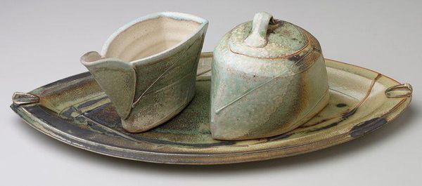 This "Creamer" was made by Julia Galloway in 1966. Its design is a testament to the enduring symbols of domesticity and ritual. Note the vessel's form, which echoes ancient amphorae, vessels used for storing life's essentials. The colors, particularly the green, evoke notions of growth, nature, and nourishment. Now, think of ancient Minoan pottery—their vessels, too, were adorned with nature-inspired motifs. The symbolism of the vessel as a container of life is not confined to one era. Consider how the Holy Grail, a mythical vessel, transcends mere objecthood, embodying spiritual nourishment and quest. Even in modern times, the simple act of sharing cream becomes a ritual, a symbol of connection and sustenance. This Creamer isn't just a functional object; it’s a receptacle of shared moments, a tangible link to our collective past. It invites us to ponder the subtle yet profound ways in which everyday objects carry cultural memory.