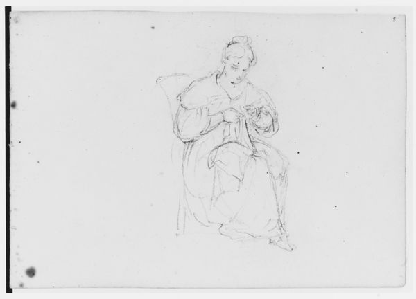Curator: Examining this drawing from Francis William Edmonds’ sketchbook, "Man Pointing and Writing; Man with Arms Folded," executed in pencil on paper between 1835 and 1839, really focuses our attention on the artistic process itself. Editor: Yes, there is a wonderful intimacy to seeing the artist work through these two figures. They appear caught in a moment of...instruction, perhaps? What do you see happening here, beyond a surface read of the subject? Curator: Let's consider Edmonds' access to materials: pencils and paper in the 1830s weren't universally available. Who could afford the luxury of sketching? What social class is being depicted, or at least, the type of person the artist likely encountered? Also, think about the labor involved – Edmonds, through this sketch, is processing observation into art, revealing his own engagement with the world around him. Editor: That's fascinating. So, instead of simply seeing a quick sketch, we can consider it a document reflecting economic and social realities of its time. I hadn’t thought about the accessibility of even basic materials like that. Curator: Exactly. And the "academic art" tag associated with this suggests a certain training, a tradition of draftsmanship that privileges certain subjects and approaches. Is this just a casual sketch, or something more deliberately crafted for potential development into a more “finished” product? How do the material choices—the immediacy of pencil—contribute to or subvert these established hierarchies of artistic production? Editor: It gives the scene a raw immediacy, as though you are watching Edmonds put pencil to paper, rather than examining the completed artwork. Thanks to you, now I am left thinking about socioeconomic privilege manifested in a simple sketch. Curator: And considering artistic labor! Ultimately, this drawing, in its apparent simplicity, opens up complex questions about artistic creation, social class, and the value we ascribe to both the materials and the act of making art.