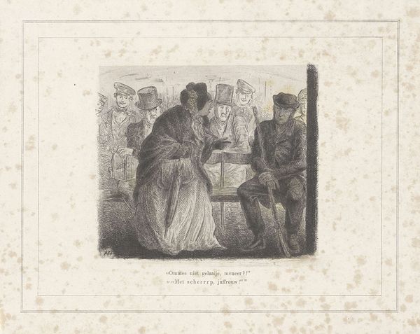 H. P. Hansen made this Illustration for Hans Christian Andersen’s "The Galoshes of Fortune" in Denmark, sometime in the 19th century. It depicts three men in a carriage, all wearing hats and coats, and all gazing out of the window. This image creates meaning through the visual codes of 19th-century Danish society. The men's clothing and hats suggest they belong to the middle or upper class, able to afford travel and respectable attire. The carriage represents technological progress and social mobility, while the landscape outside the window hints at the allure of travel and adventure. As an illustration for a fairy tale, it blends realism with the fantastic, commenting on the social structures of its time by juxtaposing everyday life with the extraordinary. Historians researching this artwork might consult Andersen's stories, period newspapers, and social histories of Denmark to understand its context better. The meaning of this art hinges on its social and institutional environment.