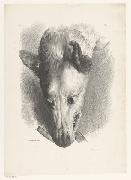 Editor: Here we have Jacobus Cornelis Gaal’s “Head of a Calf,” an etching from 1851, currently housed in the Rijksmuseum. It feels… gentle, almost melancholic. What do you see in this piece, especially considering the time it was made? Curator: The vulnerability is striking, isn't it? Think about the socio-economic context of the mid-19th century. In agrarian societies, livestock, like this calf, represent not just sustenance but economic capital. How does Gaal’s rendering, its softness and almost reverent detail, complicate our understanding of the animal’s role? Editor: That’s interesting. It’s a portrait, like someone important, but it is also livestock, which might imply comments on economic status. Curator: Exactly! Gaal elevates the animal, prompting us to confront uncomfortable questions about our relationship with animals, questioning human dominance and commodification within agricultural systems. What does it mean to memorialize a being destined for consumption? Does it invite empathy, perhaps even guilt? Editor: It certainly shifts my perspective. I hadn’t considered it as a commentary on human-animal relationships, but it is undeniable in this portrayal. Thank you! Curator: The beauty of art lies in its power to provoke critical thought. The image acts as a reminder of ethical considerations. It invites a re-evaluation of these structures. I'm glad we could think it through together!