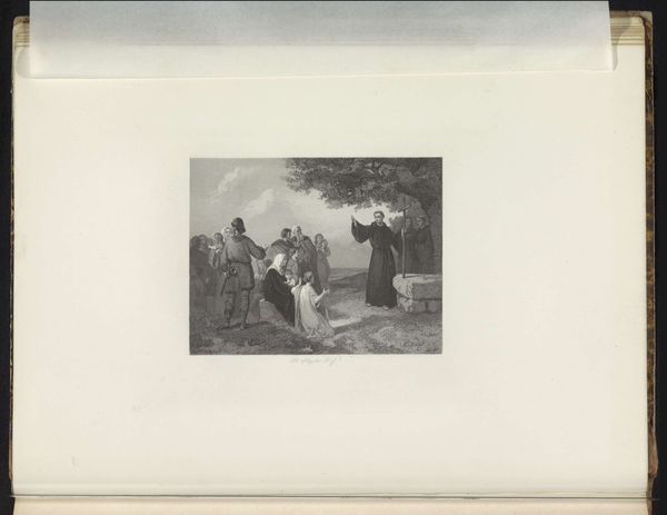 Willem Frederik Wehmeyer created this print titled 'Wasvrouw bij een brug'—or 'Washerwoman by a bridge'—using etching. This genre scene shows a woman, presumably a washerwoman, at work by a bridge, while a mother and child look on. It likely reflects the social realities of 19th-century Holland. We see the ordinary labor of working-class women represented. Wehmeyer depicts the hierarchies of labor and leisure, while reminding us of the physical demands of everyday life for women. The bridge itself suggests connections and divisions within the community, a physical and symbolic link between different social spheres, while reminding the viewer of those who are excluded from the space of the home. To understand this print better, we can turn to historical archives and studies of 19th-century Dutch society, looking at the representation of labor and the role of women in art. In doing so, we can appreciate how this image both reflects and shapes our understanding of the past.