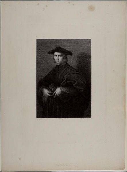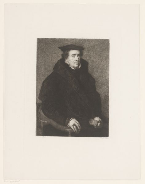 Curator: What strikes me immediately is the weightiness of the cloak in contrast to the delicate rendering of Maximilian's face. Editor: Indeed, the lithograph, created sometime between 1861 and 1889 by William Unger, holds a quiet drama, doesn’t it? The original resides here at the Rijksmuseum and is titled "Portret van Maximiliaan I van Habsburg.” Curator: Yes, quiet is a perfect word. There's an undeniable tension there, especially considering the context of power and Habsburgian history. Are we seeing a deliberate subversion? A commentary on the burdens of leadership perhaps? It feels melancholic. Editor: Subversion may be a strong word here, but let's consider Unger’s process. Unger's engravings often used labor-intensive methods, each line carefully placed and meticulously etched to produce these gradations in light. What social commentary, or even resistance, lies in demanding careful work like this during the Industrial Revolution, which demanded increased efficiency and mechanization? Curator: That's a rich layer I hadn't fully considered. The detail speaks to something outside industrial capitalism, offering a counternarrative within the imperial gaze. This adds nuance to any contemporary conversation about decolonizing the archive, which is inherently biased, isn’t it? Editor: Exactly, while we consume this lithograph, how many steps, from drawing to the final touches, demanded Unger to confront a class position which greatly differed from his powerful subject, Maximilian? That difference in the division of labor gives the portrait a certain gravity, literally grounded in the working hand. Curator: So, this isn’t merely a portrait, but also a negotiation with power, an artistic performance influenced by social inequities, the very materials imbued with layers of meaning related to class and the political structures. Editor: Precisely. And for me, considering all this labor helps us escape a simplistic hero worship of elite artists or subjects, grounding even the loftiest historical figure in material reality. Curator: A reminder that power never exists in a vacuum. This definitely provides a refreshing, intersectional perspective of not only Maximillian's role, but how artistry navigates class boundaries.