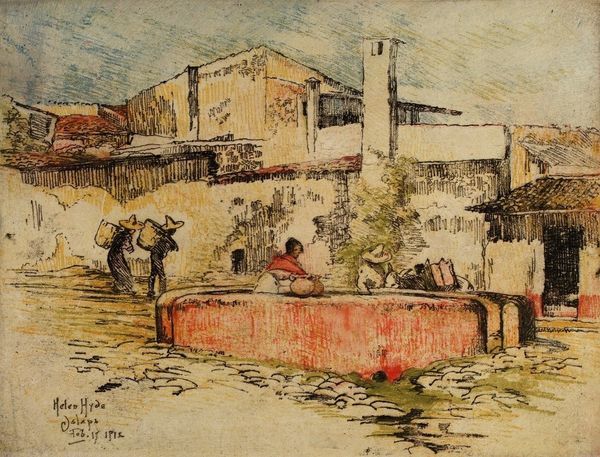Editor: Philipsen's "The River Liri, Italy," created in 1883 using oil paints, captures a moment of everyday life. There's a stillness to the scene despite the activity depicted – figures washing clothes, buildings standing guard in the background. How do you interpret this scene, thinking about its historical and cultural setting? Curator: It's interesting you notice the stillness. While stylistically Impressionistic, echoing contemporaneous trends in France, it speaks to the specific public role of art in Denmark at the time. Philipsen was consciously engaging with depictions of Southern European life, popular with the bourgeoisie. What strikes me is the almost anthropological approach. Editor: Anthropological? Curator: Yes, it's a view into a working-class scene that Danish audiences might find exotic. The labor isn't romanticized. Notice how Philipsen includes the laundry hung out to dry. These details make the lives of these Italian washerwomen real and visible. Consider how a Danish viewer might see parallels with the social realities and class dynamics of their own context? Editor: So it's not just a pretty scene; it's potentially making a social commentary by showcasing everyday life of others. Highlighting lives not often seen in Danish painting at that time? Curator: Precisely. Think of how images gain meaning depending on who is looking at them. Philipsen, perhaps inadvertently, contributed to the public discourse on class and labor through this depiction of Italy. This challenges traditional, romanticized views. What did you take away? Editor: I initially saw a simple slice of life, but I'm now thinking about how its reception might differ, adding layers of meaning beyond the surface of shimmering water.