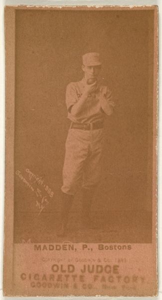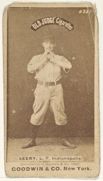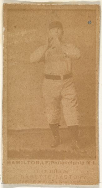 This baseball card featuring Hartman Louis "Doc" Oberlander was made by Goodwin & Company as part of the Old Judge Cigarettes series. Produced in the late 19th century, the card is a small paper print, a far cry from today's glossy sports memorabilia. The sepia-toned photograph is glued onto a cardboard backing, a process that would have been quite labor-intensive. Imagine the assembly line of workers, pasting photographs onto card after card. These were then inserted into cigarette packs, a marketing ploy to boost sales. What I find interesting is the convergence of industry, sport, and consumer culture. This card wasn't intended as high art, but rather as a disposable promotional item. Yet, today, it's a valuable artifact, offering a glimpse into the cultural landscape of the time. It challenges our notions of value and reminds us that even the most mass-produced objects can hold historical significance.