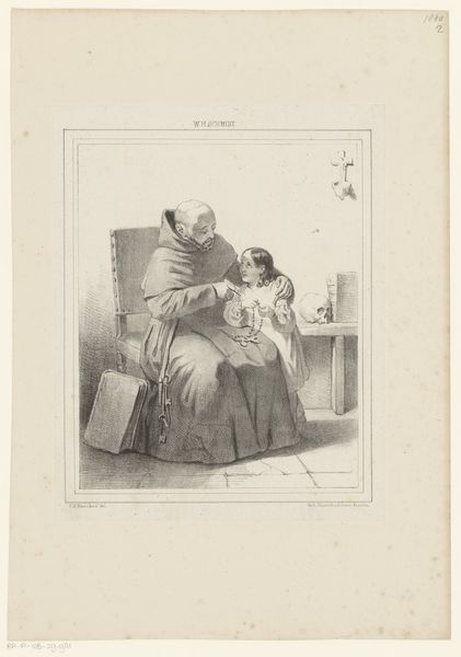 Paul Gavarni made this print, “Kind deelt geheimen met moeder” or “Child Sharing Secrets with Mother,” at an unknown date. The location of this artwork in the Rijksmuseum situates it within a specific Western European cultural and institutional context. It depicts a child whispering into the ear of his mother, creating a sense of intimacy and intrigue. The image creates meaning through visual codes of domesticity, with the mother seated in a high backed chair and the child holding a tray, possibly with her morning coffee. The print seems to reflect on the changing social structures of 19th-century France. Further research into the artist's biography, the cultural context of 19th-century France, and the history of the Rijksmuseum would provide a deeper understanding of this artwork. Art is contingent on its social and institutional context and we as historians can decode that.