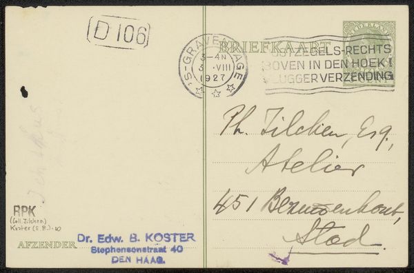 This postcard was made in 1913 by Fenna de Meyier and, like my own art making, is about process. Look closely and you’ll see this isn’t just a message, it’s a performance. I’m drawn to the layering of marks. The handwriting, looping and urgent, shares space with the official stamp of the post office, that severe circle with its radial date. What I love most is the contrast between the mechanical, almost brutal, lines of the cancellation slashing across the delicate stamp, and the casual, flowing script. Those dark blue grey lines, permanent but fleeting, like thoughts. I often think of Cy Twombly when I see things like this, his work also embraces the beauty of the incidental mark, of the ephemeral. I’m interested in how these small, throwaway acts of communication take on new life and meaning across time. Art isn’t about answers, it’s about the ongoing conversation, the beautiful ambiguity.