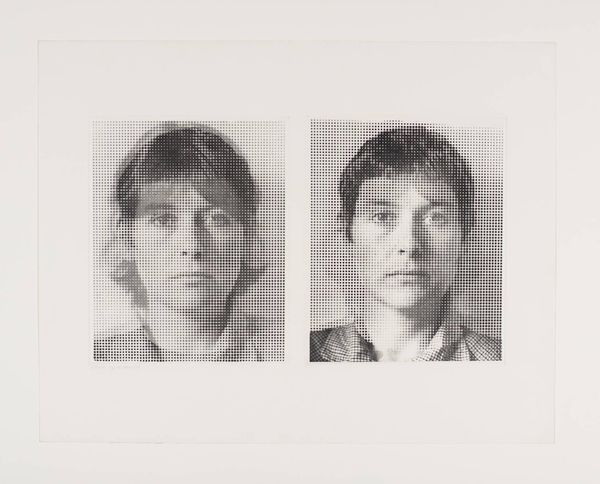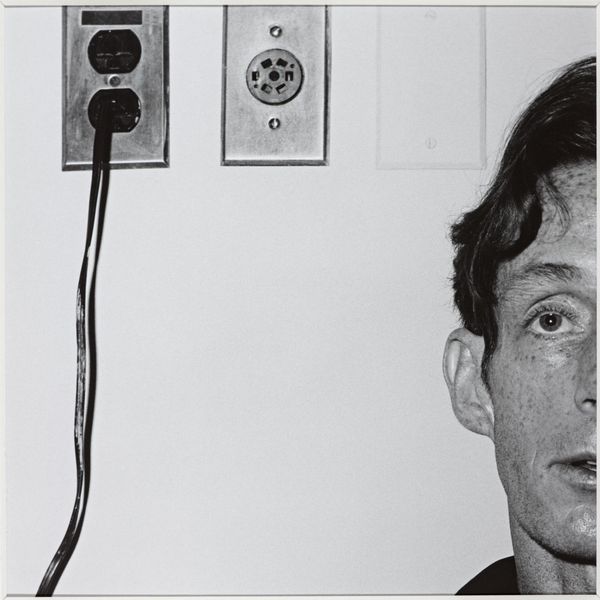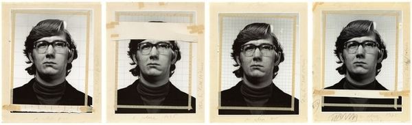 Editor: This gelatin silver print is titled "Julius Orlovsky, from Me and My Brother," created by Robert Frank around 1965 to 1968. There's something immediate about the reproduction of two identical portraits within the same frame. What's your read on this, from a curator's perspective? Curator: I see the gelatin-silver print less as a transparent window and more as a material object shaped by specific labor processes. Consider Frank's artistic choices here: the serial repetition facilitated by the photographic medium emphasizes mechanical reproduction. Editor: How does that connect to a materialist viewpoint? Curator: Think about how the act of taking a photo, developing it, and printing it connects to the broader economy. Photography, particularly in the mid-20th century, relied on complex supply chains: silver mining for the gelatin print, chemical manufacturing, and even the labor of studio assistants, should Frank have had any. These all constitute the making of this image, making Frank a 'producer' in both a material and a social sense. The inherent repeatability granted by photography disrupts any notion of the unique 'aura' of art, suggesting a more democratic distribution. Editor: I guess I hadn’t thought about all that “stuff” behind one picture. So, even his decision to present Orlovsky in this reproducible way carries social implications? Curator: Precisely. The choice of this specific printing process becomes a deliberate aesthetic statement, reflecting on art’s place in a society increasingly shaped by mass production. The supposed 'authenticity' of the captured subject diminishes as he’s just an easily replicated, produced commodity, presented in multiples in one singular photographic work. Editor: I'll definitely view gelatin silver prints differently now, as more than just pretty images. Curator: That's the goal – seeing art as embedded within material processes. Hopefully now you will consider the politics of artistic production more intently.