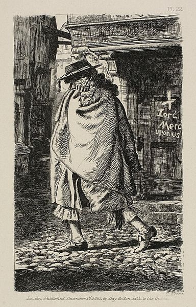 Here is the audio guide script for the artwork provided: This lithograph, "Le Marchand d'habits", or The Clothes Vendor, was created by Honoré Daumier. Its stark contrasts and dynamic lines capture a scene of Parisian street life. Notice how Daumier uses dense cross-hatching to create deep shadows, giving the figure a weighty, almost sculptural presence. The vendor, burdened with clothes, is depicted with an exaggerated expression that borders on caricature. The composition is structured to draw your eye from the vendor’s face, down the pile of clothes, and along his body. Note how the figure appears to be emerging from a darker background into the light. Daumier's strategic use of light and shadow not only defines form but also hints at deeper societal commentaries. The caricature is heightened by the slightly blurred lines to the left, which destabilizes the idea of perfect representations. This print isn't just a visual record; it’s an inquiry into the ephemeral nature of identity and representation.