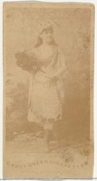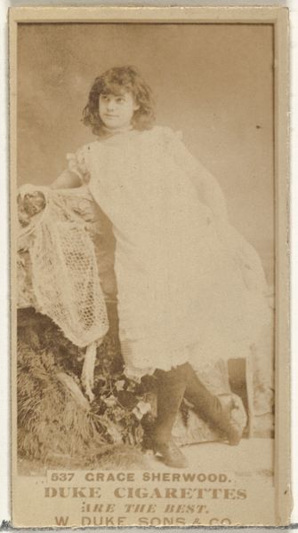 This promotional card for Duke Cigarettes, featuring actress Minni Dupree, was produced in the United States between 1870 and 1920. The image is a fascinating example of how commercial interests shaped the production and distribution of images during this period. The use of an actress to promote cigarettes speaks volumes about the social status of both the product and the performer. Cigarettes were becoming increasingly popular and were marketed towards a wide audience and actresses, like Minni Dupree, were becoming celebrities in their own right. By associating the two, Duke Cigarettes hoped to elevate their brand and appeal to consumers who aspired to be like their favorite stars. Consider how such images circulated: inserted in cigarette packs, they became collectibles, further incentivizing purchases. These cards, like the magazines and posters of the era, offer a glimpse into the cultural values and aspirations of the time. Further research into advertising history and the biographies of actresses like Minni Dupree would enrich our understanding of this image and its place in American culture.