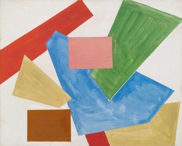 Serge Poliakoff made this painting, Composition multicolore à dominante bleue, with oil on canvas. The layering of colors creates a real sense of depth. See how the blues, yellows, reds, and greens are built up, one on top of the other? The way he lets some of the underlayers peek through really activates the surface. It’s almost sculptural, right? Looking closely, you can see the texture of the paint itself. It's not smooth or blended; you can see the individual strokes and the way the colors interact. Especially where the crimson and green intersect at the bottom, those areas give a special resonance to the piece as a whole. You can almost feel Poliakoff working and reworking the surface, adding and subtracting until he achieved this particular balance. Poliakoff’s paintings of this time remind me of the later work of someone like Sean Scully, but with a warmer, more intimate palette. Both artists invite us to get lost in the process. It's a conversation across time about form, color, and the sheer joy of painting.