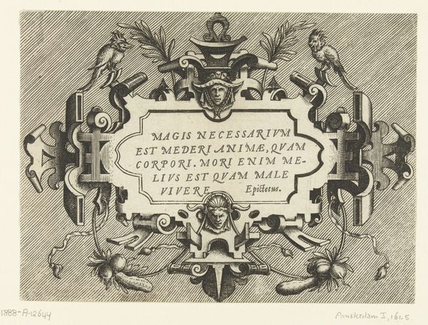 This is a print made by Frans Huys in the mid-16th century, during a period of great religious and political upheaval in the Netherlands. The cartouche, adorned with grotesque masks and fruit garlands, frames a quote from Seneca: "We must learn throughout our entire life; what will make you wonder even more is that you learn throughout your entire life until you die". In Huys’ time, the humanist revival of classical thought was in full swing. Seneca, as a Stoic philosopher, offered guidance on how to live a virtuous life amidst chaos, a theme that resonated deeply in the religiously divided Low Countries. The print, now housed in the Rijksmuseum, reflects the complex interplay of art, philosophy, and religious thought in the Dutch Golden Age. Understanding its historical context, through sources like letters, pamphlets, and religious treatises, allows us to appreciate the enduring power of art to provoke thought and reflection.