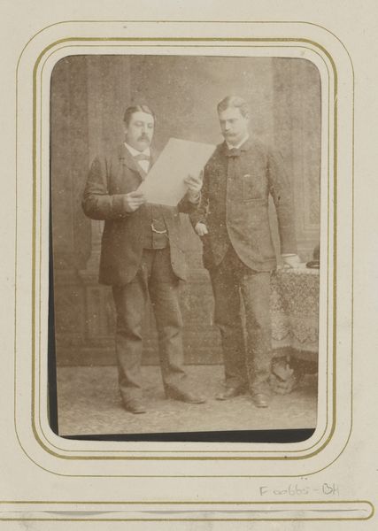 This photograph by Gustav Schlüter captures two unknown men at a table set with wine. The wine, a symbol of communion and celebration, has ancient roots in Dionysian rituals, evolving into the Christian sacrament representing the blood of Christ. Observe how the men's formal attire contrasts with the informality suggested by the wine. This tension echoes motifs found in Dutch Golden Age paintings, where lavish feasts subtly conveyed moral messages about excess and moderation. The act of sharing wine can be traced through centuries of art, from classical bacchanals to Renaissance feasts. Each epoch imbues the symbol with new layers of meaning, reflecting cultural anxieties and aspirations. This image, beyond its surface, engages us on a subconscious level. It’s a powerful reminder of how symbols persist, evolve, and resurface, connecting us through time.
