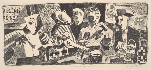 Danil Nemirovsky made this black ink drawing, titled "Community", without indication of a specific date. It features an interior scene populated by figures, some possibly portraits. The word 'Utopia' looms large in the composition, maybe suggesting an ironic intent. Russia, where Nemirovsky lives and works, has a long and complex history with utopian thought. We might ask whether his “Community” seeks to critique the legacy of failed attempts to enact radical social change. Nemirovsky seems attuned to a post-Soviet and post-internet world of individuals seeking identity and connection. The work could be seen as an exploration of the way people build communities in the digital age and how this impacts our engagement with the world around us. To dig deeper, we could research the artistic and political debates taking place in Russia during Nemirovsky's lifetime, tracing the artist's social networks and exhibition history, and conducting interviews with the artist himself.