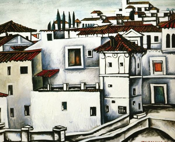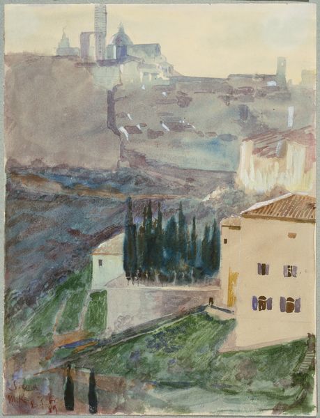 Zinaida Serebriakova made this view of Florence’s Ponte Vecchio using watercolor on paper. Watercolor offers a transparent and luminous quality, allowing the white of the paper to shine through, influencing the colors we see. Serebriakova skillfully layers washes of color to create depth and shadow, capturing the architectural detail and the way light plays across the buildings. The fluidity of watercolor allows for spontaneous effects, reflecting the atmosphere of the scene. The artist's hand is evident in the varying brushstrokes, from broad washes to finer details, demonstrating control over the medium. Working with watercolor can be deceptive, and the process requires planning and patience. It's a medium capable of delicacy, but also of conveying monumental forms, as seen here. Paying attention to these material qualities and the artist’s technique allows us to appreciate the painting's depth.