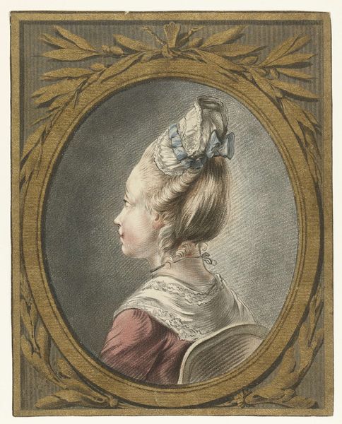 Curator: Allow me to introduce you to Jens Juel’s 1785 drawing, "Portræt af Anne Cathrine Maaløe, født Basse. Profil mod venstre" rendered in pencil and colored pencil on paper. Editor: The first thing that strikes me is the quiet austerity. The limited palette and profile view lend a cool, almost detached air. Curator: Juel expertly employs line and shadow to convey form. The texture of the delicate frills of her cap and collar contrast with the smoothness of her skin. Consider the formal restraint; the line is crisp and pure, echoing Neoclassical ideals. Editor: And yet, I see the portrait as hinting at a more nuanced story. Look at the sharp, almost severe angle of her jaw and her composed expression, perhaps betraying the restrictive expectations placed upon women in that era. We can almost imagine her silently negotiating the constraints of 18th-century Danish society. Curator: Interesting point. Structurally, it's about the balance between light and shadow, how Juel creates depth and volume using minimal color. Editor: I think her gaze, averted but not unkind, challenges viewers. Is it passive acceptance, or quiet defiance? It speaks to a complex negotiation of power and representation within portraiture itself. Anne Cathrine Maaløe isn't merely a pretty picture. Curator: Agreed, there's an intriguing tension. Formally, the severe profile creates a kind of classical purity. This lends the drawing an immediate clarity that captures one’s eye. Editor: Clarity is only the beginning. The deliberate constraint in portraying her speaks volumes, even mutely, about the world she inhabited. What did it cost to live under this cool but impenetrable perfection? Curator: Thinking purely about form and its cultural effect, it allows us to read the details as structural components rather than simple representation. Editor: It is powerful how seemingly restrained compositions can provoke questions about female agency, social expectations, and visibility even centuries later. Curator: It seems we both found compelling perspectives, perhaps highlighting the subjective experience intrinsic to viewership itself. Editor: Absolutely; and now that I think of it, isn't that dialogue the real portrait?