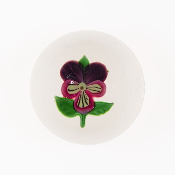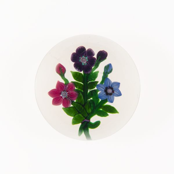 This glass paperweight was created by the Clichy Glasshouse between 1837 and 1885. Encapsulated within its clear form is a delicate flower, a symbol laden with meaning across cultures and epochs. The flower, a motif blooming through art history, appears in ancient Egyptian tombs, symbolizing rebirth, and in Renaissance paintings, representing beauty and transience. Its presence transcends mere decoration, tapping into our collective memory. The intricate details of the flower, carefully crafted in glass, evoke an emotional response, a longing for nature's beauty captured in a lasting form. Like Botticelli's Venus emerging from the sea, adorned with flowers, this glass flower speaks to a deep-seated human fascination with the ephemeral and the beautiful. This single flower in glass is not just an object; it is a symbol, an echo of art across time, continually resurfacing to engage us on a profound, subconscious level.