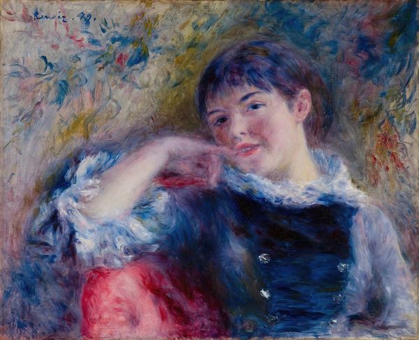Harrison Fisher created this pastel drawing, “Young Beauty in Bonnet” and what immediately strikes you is the artist's expressive use of line and color against a warm, earthy ground. The soft pastels create an ethereal, dreamlike quality, enhancing the subject's delicate features. The composition is carefully arranged, with the young woman's face as the focal point. The diagonal lines formed by her arms and the bonnet create a dynamic movement. The splashes of orange, pink, and turquoise around her head not only complement her complexion but also evoke a sense of vibrancy. Fisher's loose, gestural strokes give the work an unfinished, spontaneous feel, reflecting the modernist interest in process over pure representation. Ultimately, it is the interplay of form and color that captivates. This focus on aesthetic qualities over strict realism signifies a shift in artistic priorities, marking a departure from traditional academic painting.