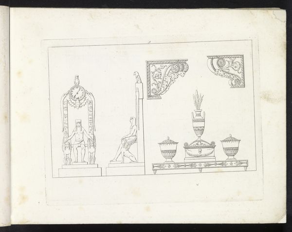 Pietro Ruga made this print of wall lights, consoles, and a lock, but we are unsure when. It presents a selection of domestic fittings, items easily overlooked in the grand narratives of art history. Yet, they speak volumes about the social and cultural life of their time. Consider, for instance, the elaborate designs. These weren't for every home. They reflect a world of social stratification, where even the mundane aspects of life became opportunities to display status. The lock, too, is a potent symbol. In a society defined by property and hierarchy, security was paramount. The architectural elements depicted are neoclassical, suggesting an association with Enlightenment ideals of order and reason. The style itself was institutionalized, taught in academies and disseminated through pattern books. To understand these designs more fully, we might consult period architectural manuals and social histories. This print by Ruga reminds us that art history isn't just about grand masterpieces, it's about the everyday objects that shaped the lives and experiences of people in the past.