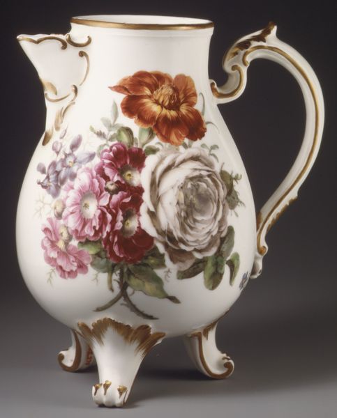 This milk jug was made by the Loosdrecht manufactory in the Netherlands, using hard-paste porcelain. A complex material, it is created by firing a mixture of kaolin clay and petuntse stone at extremely high temperatures. Porcelain's appealing qualities include its pure white color, translucency, and strength. But these come at a cost. It is notoriously difficult to work, prone to warping and cracking during firing. The jug would have required considerable skill to form on the wheel, and its handle and spout carefully applied. The painted floral decoration, too, speaks to a high level of craftsmanship. And of course, the gilt trim adds a touch of luxury. Ultimately, this jug represents a key moment in the history of European ceramics. Loosdrecht and other factories were competing to replicate the prized porcelain of China. Appreciating the jug therefore means understanding the dynamics of trade, labor, and artistic ambition that shaped its creation.