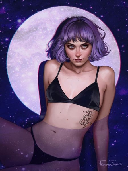 Fernanda Suarez's digital painting, "Morrigan", uses modern software to emulate traditional painting techniques. The image is created through a combination of digital brushstrokes and layering, a process that mirrors the way a painter might apply oils or acrylics to canvas. However, here, the artist harnesses the precision and flexibility afforded by software and graphic tablets. The smooth gradations of light and shadow, coupled with sharp details, produce a hyperrealistic effect. Suarez's artistic choices are steeped in the culture of digital media and online communities. This is where the work finds its primary circulation and reception. Her art is not about the singular handmade gesture of a paint stroke, but about infinite reproduction and dissemination. It’s a departure from the traditional art world and is democratized for mass consumption. This painting invites us to reconsider what constitutes "art" in an age dominated by digital tools and online platforms.