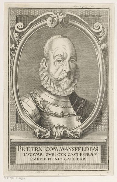 This is an undated print of Giuseppe d’Alvino by an anonymous artist. It's a study in how geometric forms intersect with the human figure to convey authority. The composition is structured around a series of nested rectangles and an oval, creating a rigid framework. This geometric rigidity is softened by the organic lines of d’Alvino’s face, framed within the oval. The artist uses line and hatching to create a sense of depth, but the overall effect is one of flatness, emphasizing the print's graphic quality. The inscription at the base anchors the portrait, connecting the image to the subject's identity and accomplishments. The print thus functions as a sign, not just of d'Alvino's likeness, but of his status and legacy. Ultimately, the print destabilizes the traditional portrait by reducing it to its most essential elements, inviting us to consider how meaning is constructed through form, line, and the careful arrangement of space.