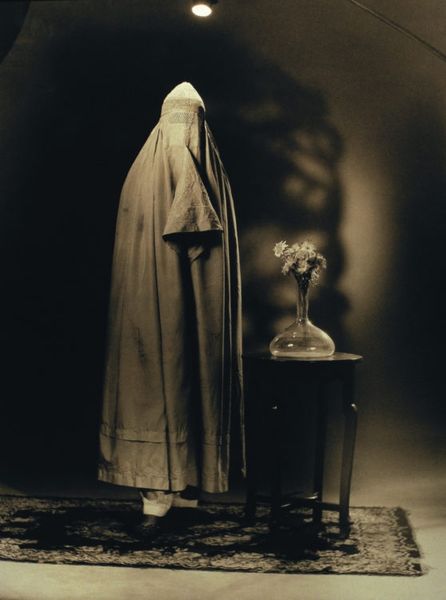 William Christenberry made this unsettling, untitled photograph sometime in the late 20th century. It shows a Ku Klux Klan uniform, presented with a kind of stark, almost clinical directness. What's so striking is the way the material qualities of the fabric are rendered in such detail. The sheen of the satin hood, the way it catches the light, almost makes it seem like a ghostly apparition. See those two eyeholes? The stitching around them is so delicate, so precise. It's as if Christenberry is forcing us to confront the banality of evil, the way something so hateful can be constructed with such care, such attention to detail. Christenberry spent much of his career grappling with the complex, often painful history of the American South. You might think of the way Walker Evans photographed the everyday realities of the Depression era, unflinching and direct. This photograph, for me, is equally powerful in its simplicity, in its refusal to look away.