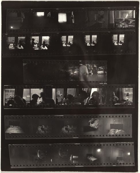This filmstrip by Robert Frank is a series of black and white photographs on a dark ground. Frank, known for his grainy, snapshot-like aesthetic, wasn’t afraid to get raw. These frames, like fleeting thoughts, give you glimpses into lives and places, hinting at stories without spelling them out. The graininess of the film, the stark contrasts, it's all part of the feel, like a half-remembered dream. Look at the fourth row, with the face emerging from the dark, it's like a punch in the gut, right? That high contrast, that sense of being there, in the thick of it, is Frank's signature. It's a quick, gestural way of capturing a moment. Frank’s work, especially "The Americans", shook things up, and you can see echoes of his influence in the work of photographers like Nan Goldin, who also didn't shy away from the grit and emotion of real life. Art isn't about answers, it's about the questions.