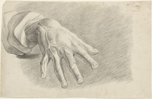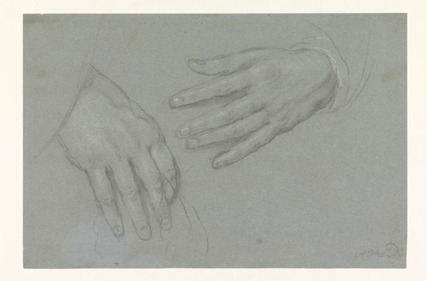 Pierre Puvis de Chavannes rendered this sketch of hands with graphite. Hands, across epochs, have served as potent symbols of creation, power, and supplication. Consider the hand of God reaching down to Adam in Michelangelo's fresco—a divine spark transmitted through touch. Here, these hands evoke a sense of potential energy, a moment of quiet contemplation before action. The open palm, a gesture of vulnerability and offering, echoes in countless images throughout history, from ancient Roman orators to Renaissance depictions of saints. The arrangement of fingers, too, holds meaning. Notice the subtle tension, a readiness to grasp or release. This motif appears again and again, charged with different emotional valences. It’s a dance of memory and emotion, resonating deeply within our shared cultural consciousness.