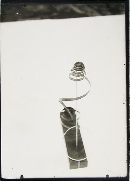 This is one of László Moholy-Nagy’s photograms, a cameraless photograph, that is striking for its ethereal forms floating against a stark black background. The composition, with its arrangement of objects, primarily features curves and angles playing with light and shadow to evoke a sense of depth. Moholy-Nagy's work here exemplifies the Bauhaus interest in the interplay between art, technology and abstraction. The photogram technique itself, devoid of traditional artistic gesture, aligns with the Bauhaus ethos of embracing new media. The floating objects – is that the Eiffel Tower? – defy gravity and challenge our perception of space. This destabilization prompts a re-evaluation of the relationship between the object, its representation, and the viewer. The high contrast between the luminous shapes and the dark void functions as a sign, drawing attention to the materiality of light itself. Moholy-Nagy does not seek to represent the world but to explore the essence of photographic form and its potential to reveal new visual possibilities.