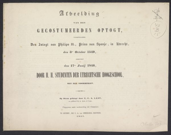 Curator: Here we have a striking example of late 19th-century decorative arts. This is the 1890 printing of Joseph Victor von Scheffel's "Der Trompeter von Säckingen," a popular narrative poem. Editor: Immediately, I'm struck by the visual weight given to the typography. The black letter font, with its pronounced serifs, almost becomes the dominant image. It feels deliberate, even imposing. Curator: Indeed. Consider that the creation of such a book, even a mass-produced one, involved considerable labor. The choice of textile for the cover, the quality of the paper, and, as you mentioned, the typesetting, reflect the perceived value of the text and its intended audience. Editor: And think of what a trumpet signified in 1890: heralding, communication, authority! The tale of the trumpeter then taps into that established symbolism. Beyond its initial appearance as literature, is this an image invoking authority? Curator: Good point. Scheffel was immensely popular and often considered a national poet. His work helped cement German identity in the wake of unification, and we must remember, producing such texts with elaborate typography, the very act was ideological! Think of the scale of paper production, ink production and dissemination! Editor: Yes, that visual presentation reinforced the cultural significance. You have that old script alongside more clean typography that represents both authority and the arrival of modernization. You see them on the page at once! It makes me wonder, what collective hopes and memories was it appealing to? Curator: That connection between historical aesthetics, a specific type of typeface, and nationalism… a complex interplay, made manifest in something as "simple" as a book. I’ve come to realize, after discussing the production of such works, how incredibly not-simple they really are. Editor: Ultimately, it seems, it is a portal through which we can see not just the words, but the entire apparatus of cultural production. Curator: Agreed. It brings a richer understanding than any simple summary ever could.